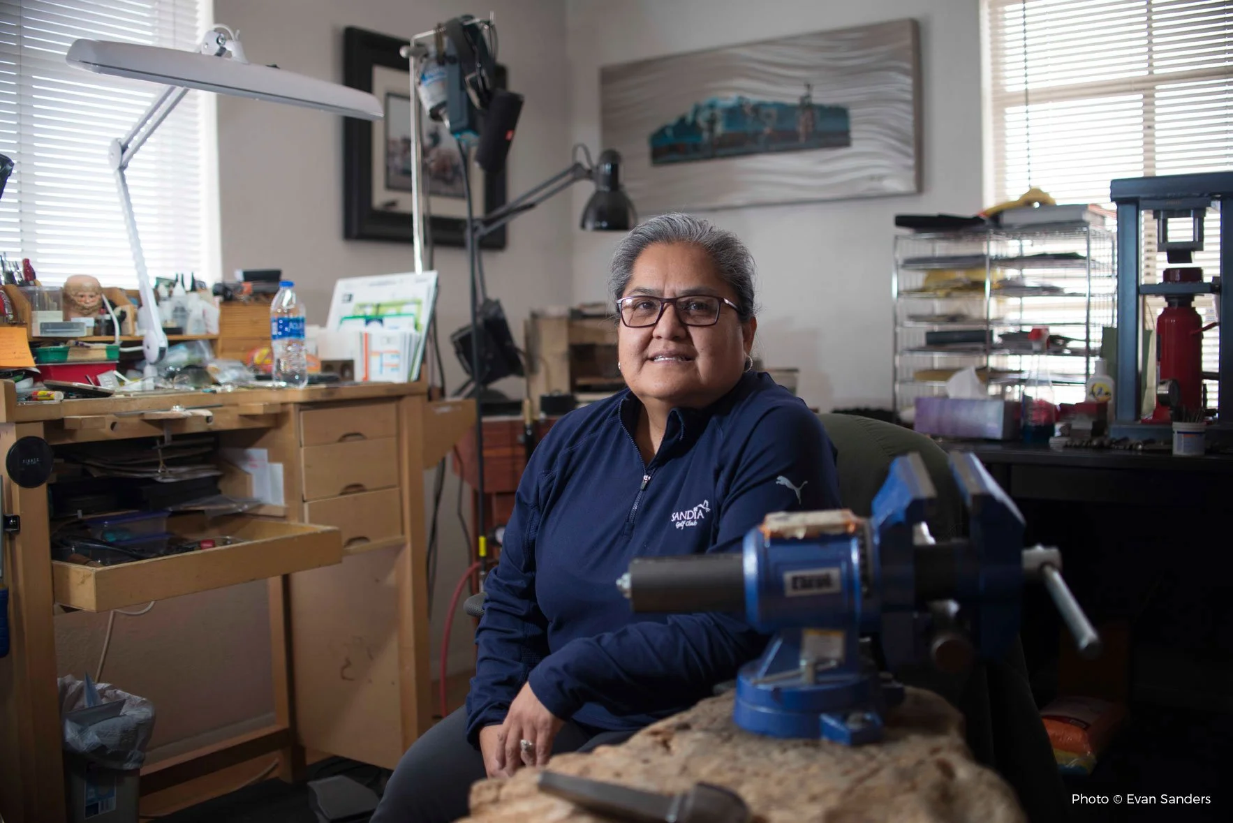 Born in Keams Canyon, Arizona, in 1964 and raised on a remote area of the Navajo reservation, Jennifer Curtis, the daughter of famed silversmith Thomas Curtis, began playing around in her father’s studio at the age of eight. The graceful tenacity of her work reflects her personal fortitude, illuminating the wearer with a reminder of their own unique courage and inner power. Learn more about her work at Four Winds Gallery.