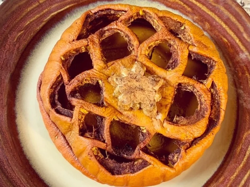 This recipe is a reimagining of the contemporary concept of what we know as a “pumpkin pie” using old techniques many of our ancestors undoubtedly used to cure, preserve and cook hard fruits and squashes.